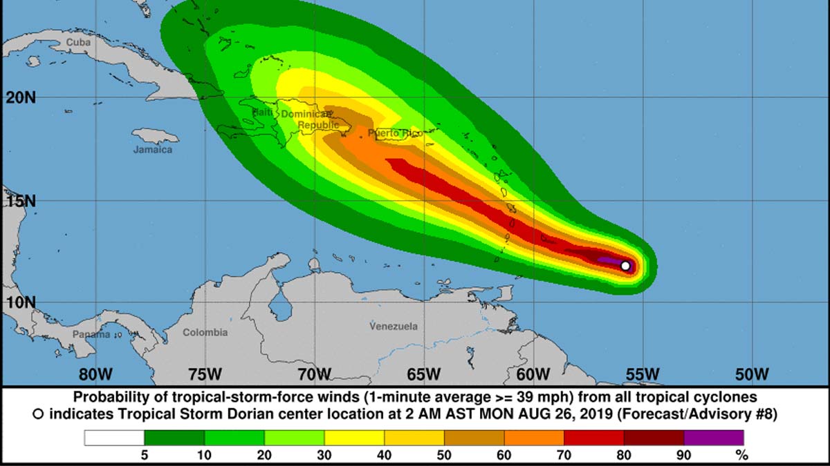 Interests in Puerto Rico, the Virgin Islands, and Hispaniola should monitor the progress of Dorian as watches could be required as early as later today.